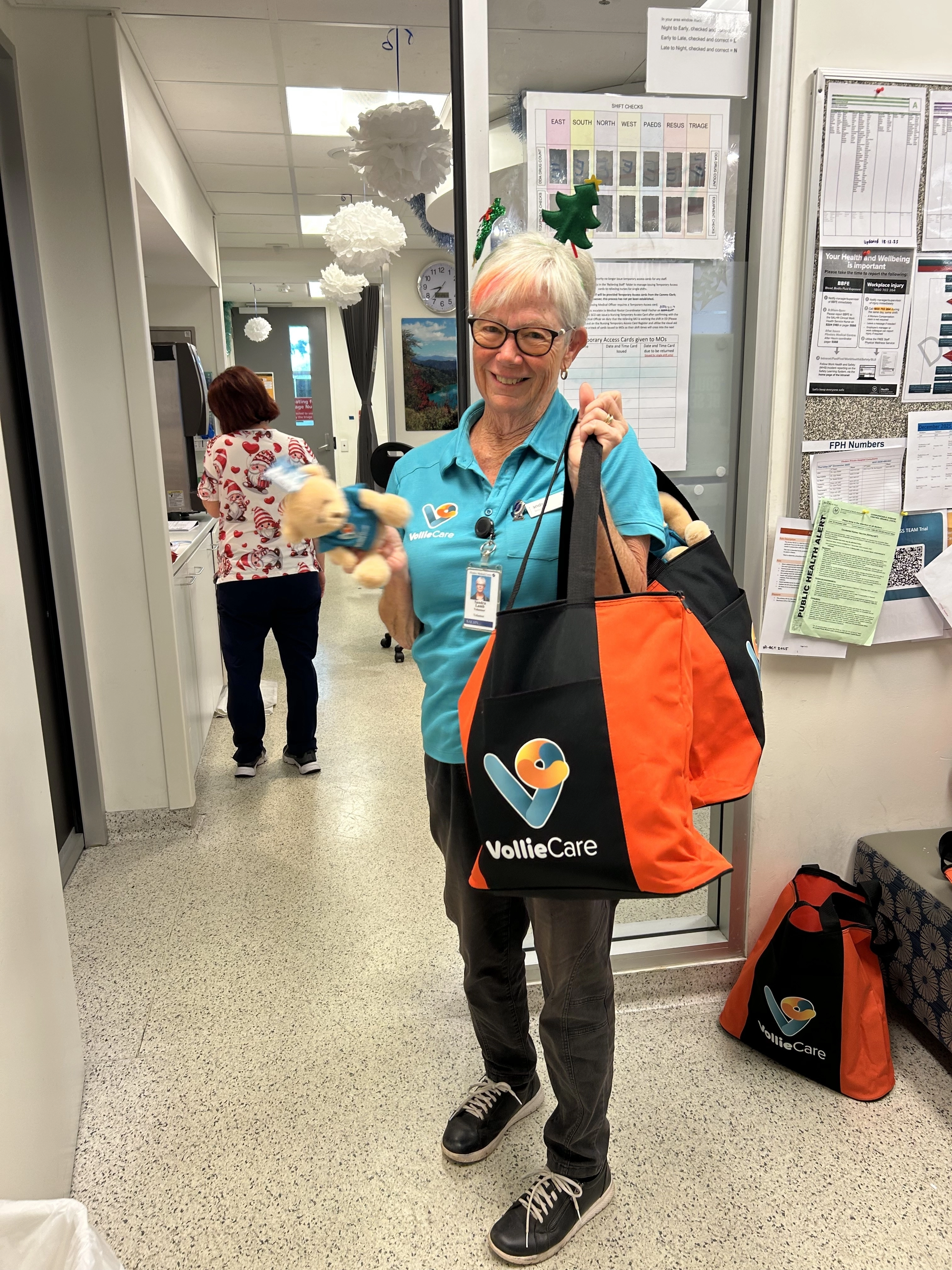 Welcome to 2026. All of our volunteers return on Monday 12 January (and by the number of people who are getting lost and walking past the office -we need the guides back!!!). However, there have been a number of volunteers who have remained active over the Christmas and New Year period, including Sandra who visited patients and families in ED and delivered Christmas gifts from VoillieCare. Everyone was pleased to receive a VollieBear!